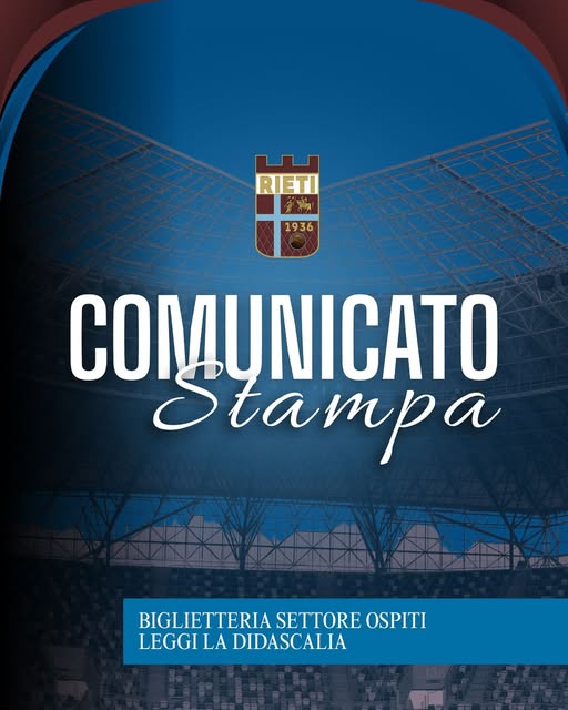Si precisa che i biglietti per il settore ospiti non potranno in alcun modo essere acquistati a Rieti, il giorno della partita.