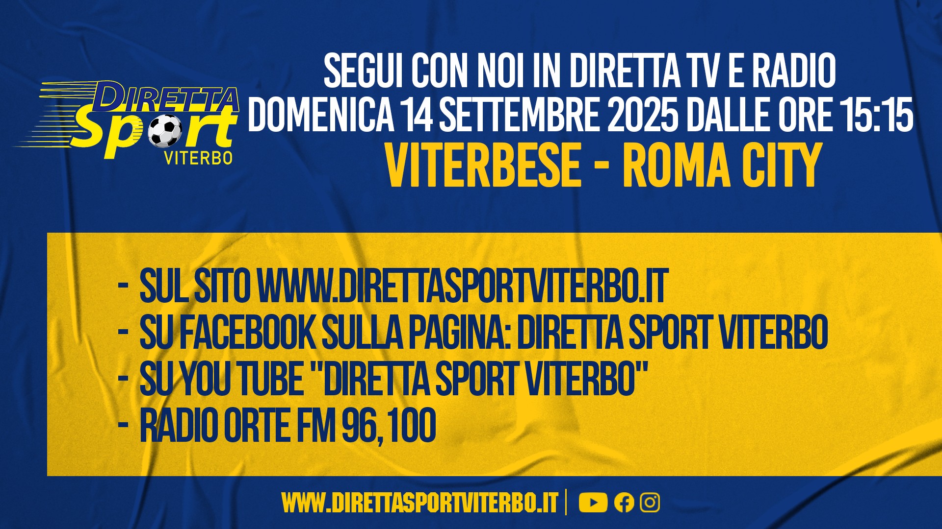 VITERBESE-ROMA CITY “Vivila in diretta con Diretta Sport”. Domenica 14 Settembre 2025 dalle ore 15,15. Come e dove seguirci.
