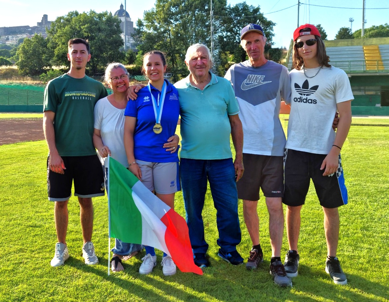 Il baseball montefiasconese è di solito molto attento quando c’è da fare festa! Ma questa volta l’occasione è veramente importante: tutta la società si stringe intorno alla famiglia Carletti per festeggiare l’87mo compleanno del dirigente giallo-verde Carlo, che segue tuttora la serie C, completando così 50 anni di tesseramento come Dirigente Accompagnatore della società, fin dal 1975, quando il figlio Pietro, a 10 anni, partecipò ai Giochi della Gioventù di Baseball con la squadra di Montefiascone che vinse il titolo regionale (vd foto). È un grande traguardo personale, ma la festa deve necessariamente includere tutta la famiglia Carletti, che ha sempre rappresentato un punto fermo nella società. Abbiamo detto degli inizi di Pietro, oggi 60enne, manager della serie C, che ha giocato come lanciatore fino a pochi anni fa. Pietro non poteva sposare se non una giocatrice di softball, Laura Celoni, che ha iniziato a Viterbo per poi calcare diversi campi e diventare tecnico e classificatore.