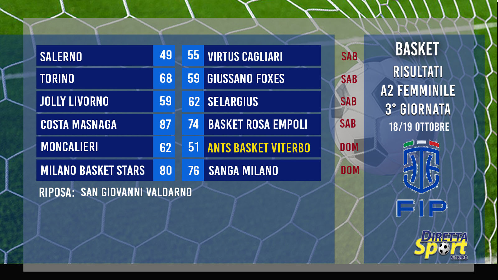 BASKET A2 FEMM. GIR. A – Risultati della 3° Giornata e Classifica.