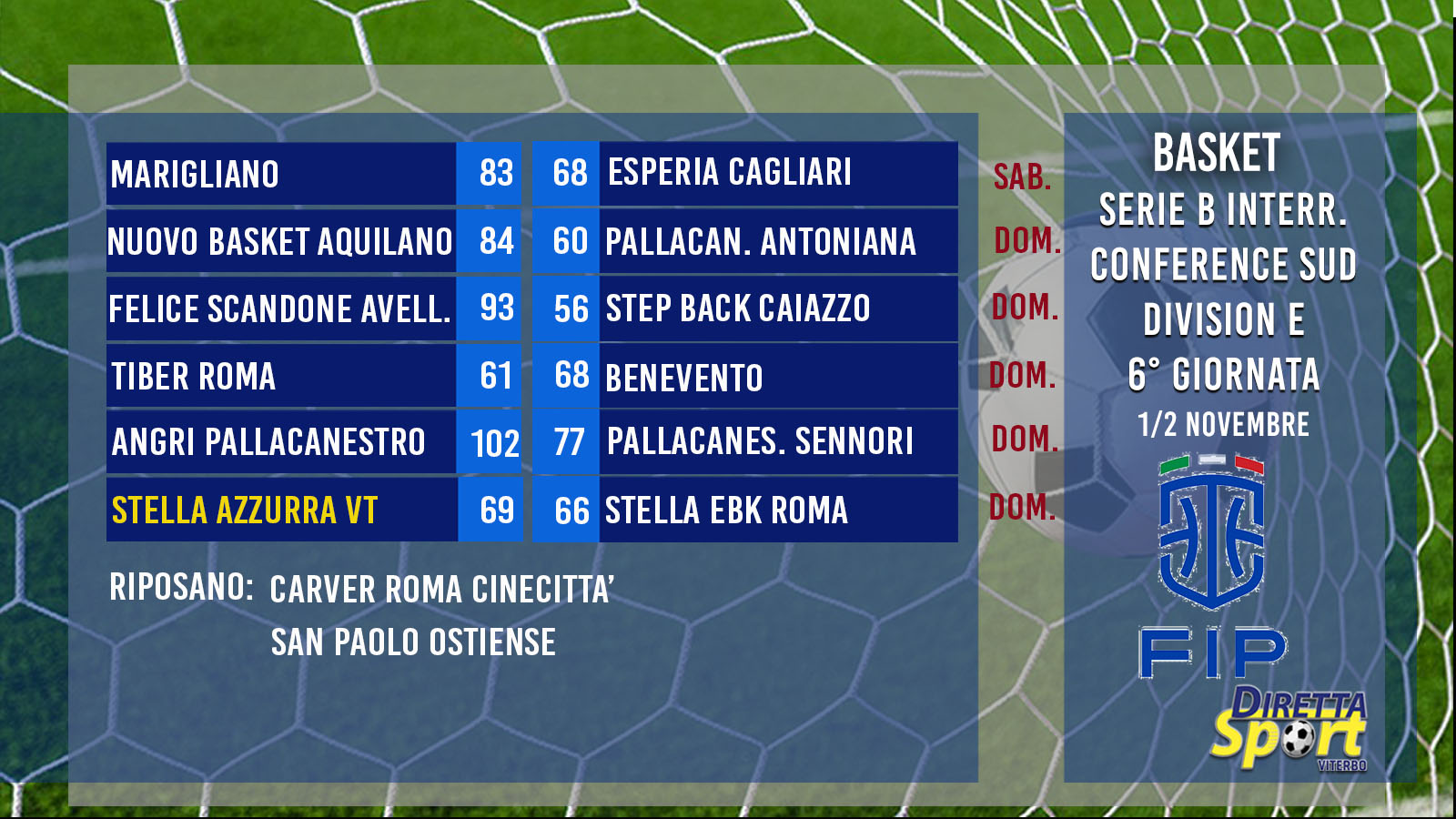 BASKET B2 GIR. E – Risultati della 6° Giornata e Classifica.