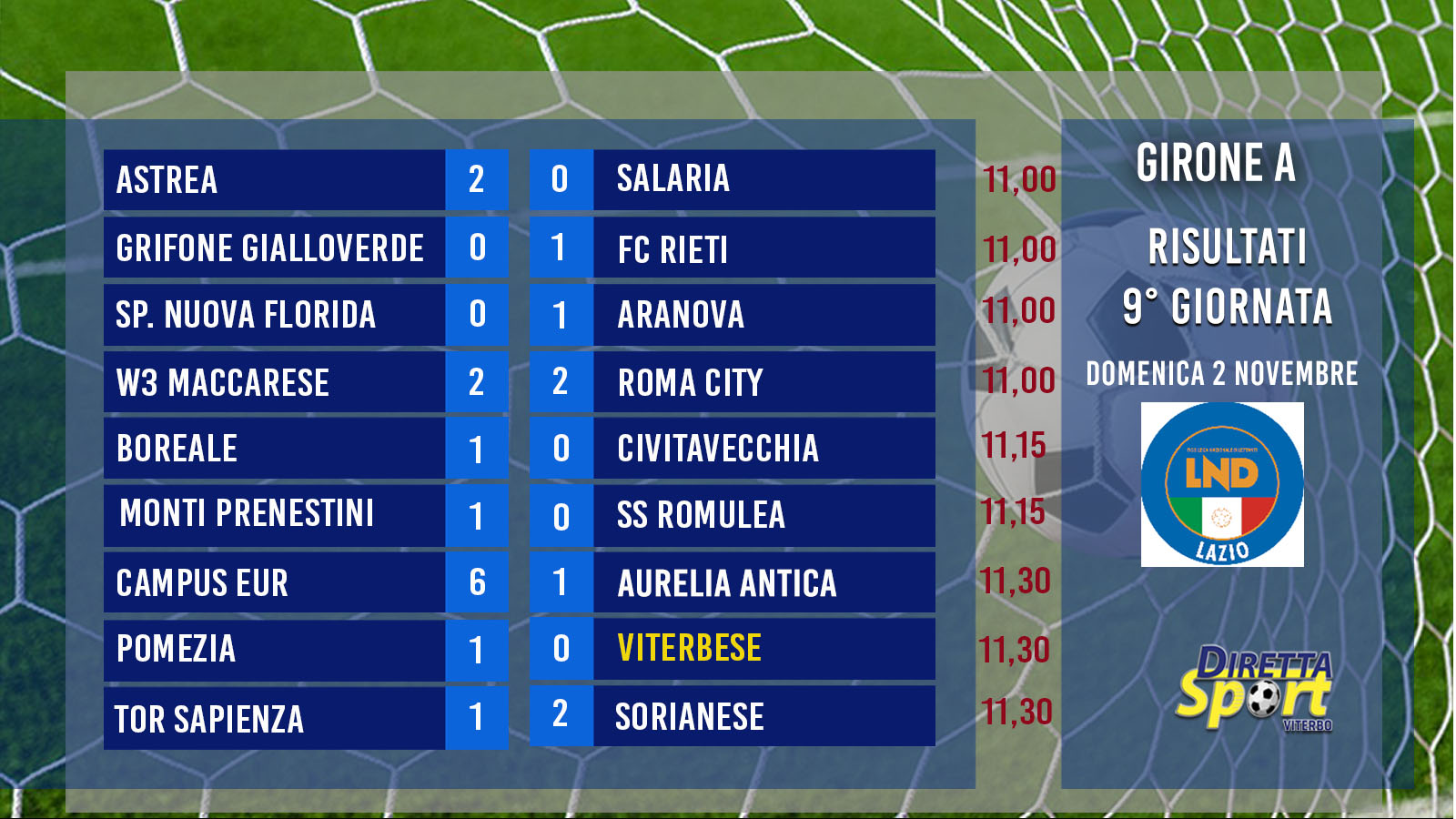 ECCELLENZA GIR. A – Risultati della 9° Giornata e Classifica.