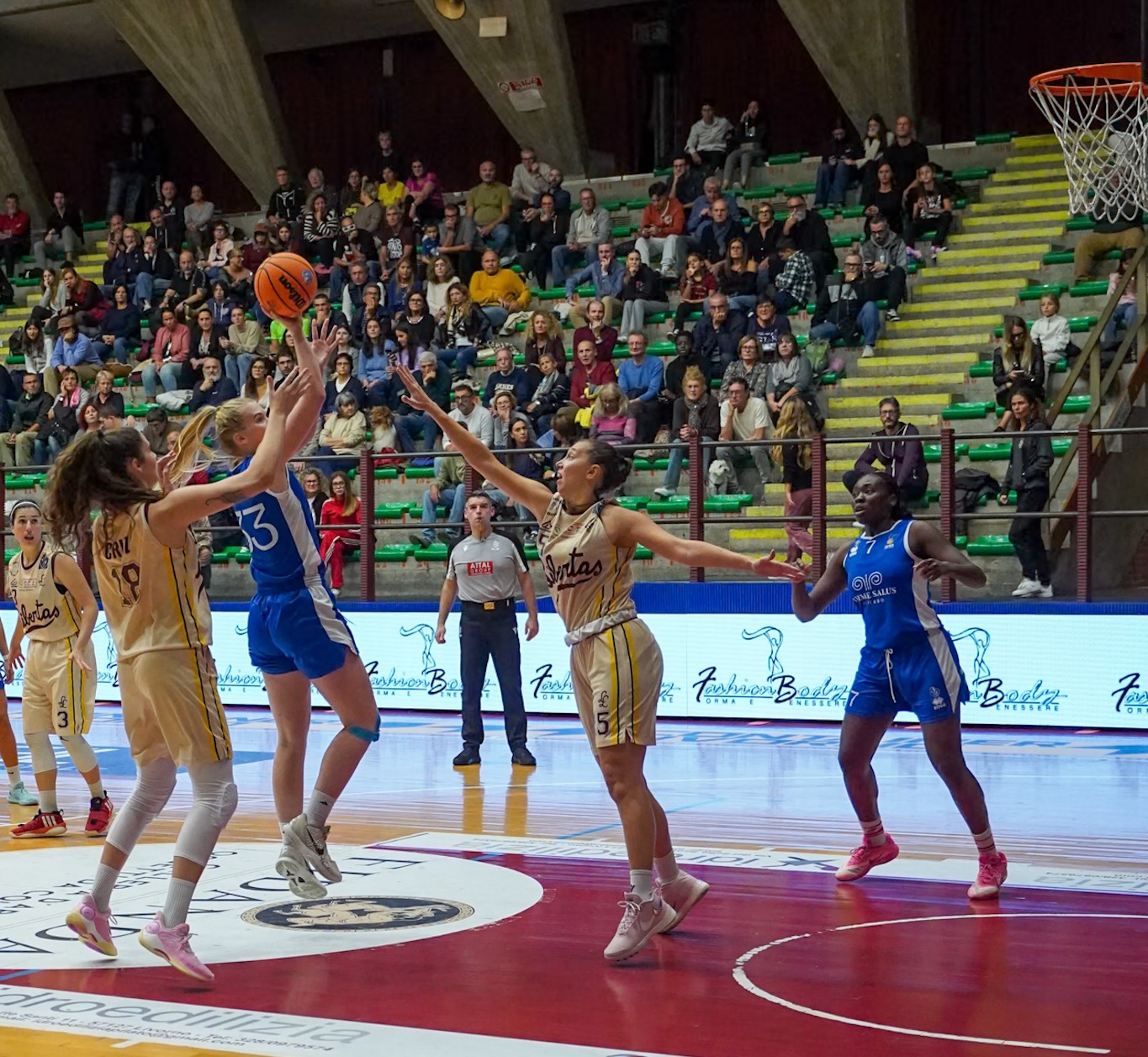 Si infrange sul ferro colpito dalle due conclusioni di Myklebust e Imuentinyan il sogno delle Terme Salus di tornare vittoriose dalla trasferta di Livorno. Il punteggio finale, 58-56, premia le toscane che sono state avanti per gran parte dell’incontro e punisce le viterbesi, orfane sin dall’inizio di Bardarè e costrette a rinunciare in corsa anche al capitano Pasquali, ko per una distorsione alla caviglia sinistra durante il terzo quarto.