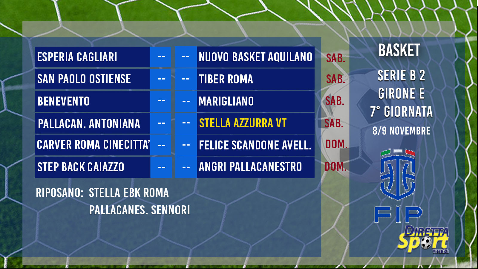 BASKET B2 GIR.E – Il programma della 7° Giornata e Classifica.