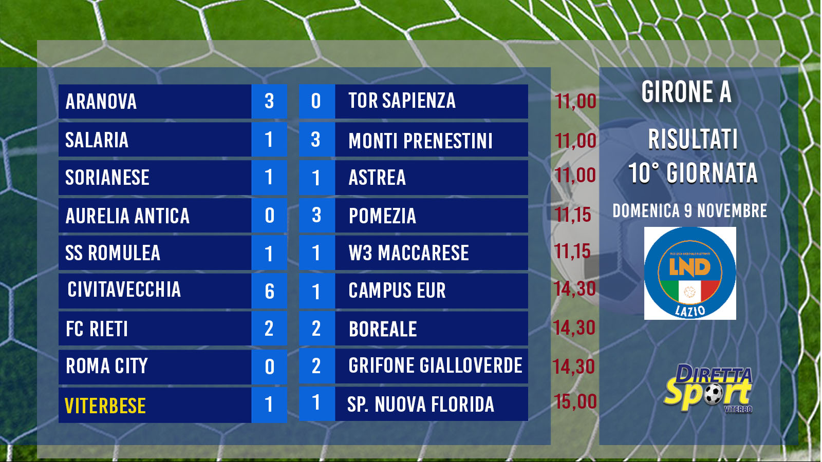 SORIANESE-VITERBESE “Vivila in diretta con Diretta Sport”. Domenica 30 Novembre 2025 dalle ore 10,45. Come e dove seguirci.