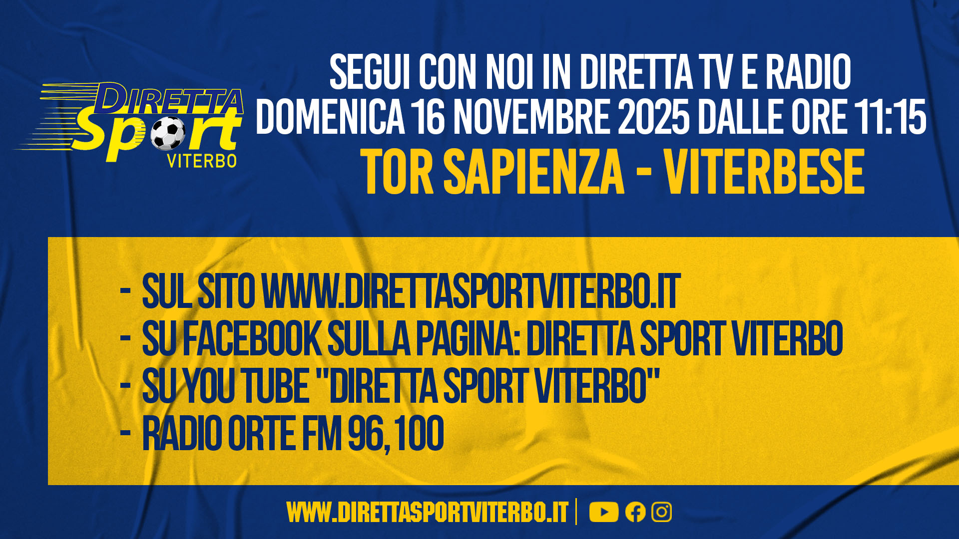 PRO CALCIO TOR SAPIENZA-VITERBESE “Vivila in diretta con Diretta Sport”. Domenica 16 Novembre 2025 dalle ore 11,15. Come e dove seguirci.