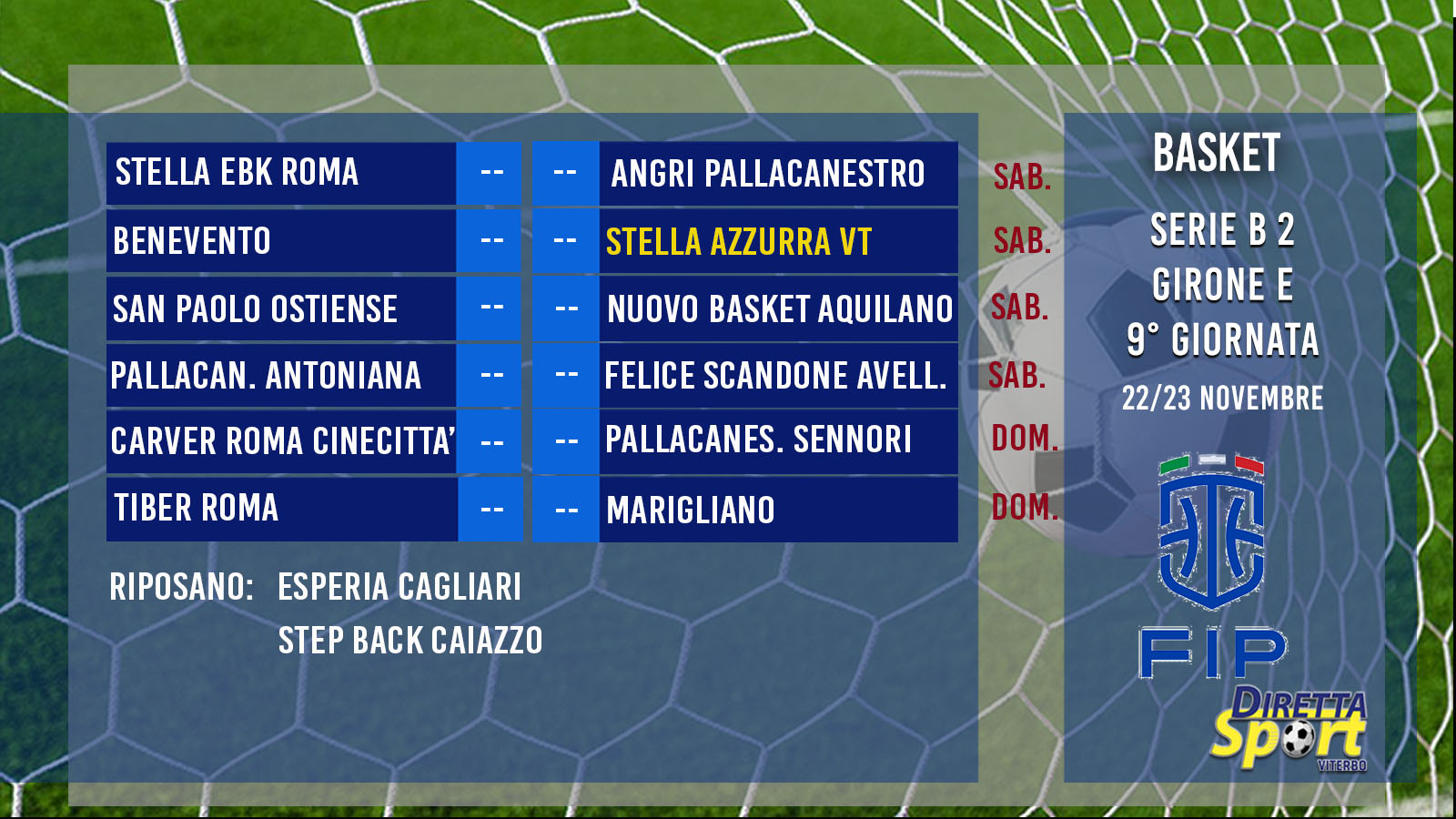 BASKET B2 GIR.E – Il programma della 9° Giornata e Classifica.