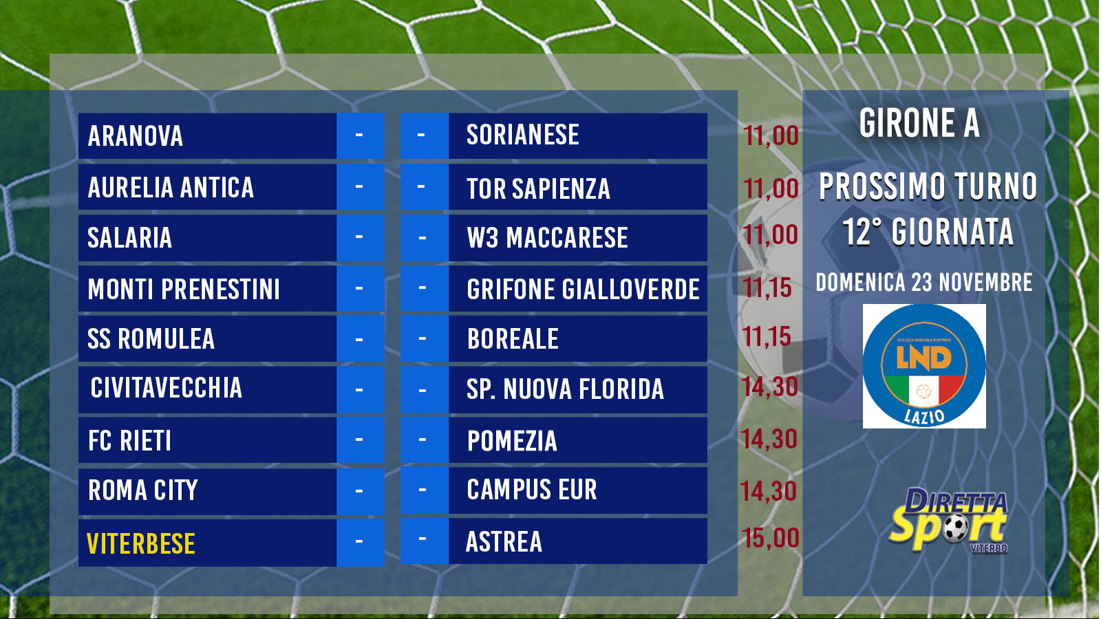 SORIANESE-VITERBESE “Vivila in diretta con Diretta Sport”. Domenica 30 Novembre 2025 dalle ore 10,45. Come e dove seguirci.