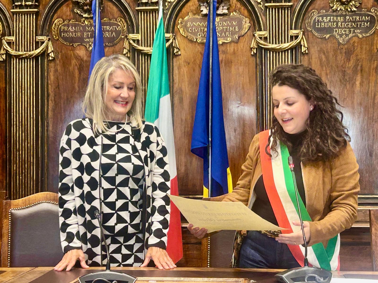 LA SINDACA FRONTINI CONFERISCE ATTESTATO DI MERITO SPORTIVO AD ANNAMARIA OLIVIERI, PRIMA DONNA DI VITERBO E PROVINCIA AD AVER RAGGIUNTO LA VETTA DEL MONTE BIANCO.