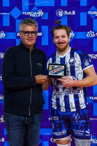 Mvp: Leonardo Fantauzzo premiato dal vice presidente del Tuscania Volley Paolo Guglielmana