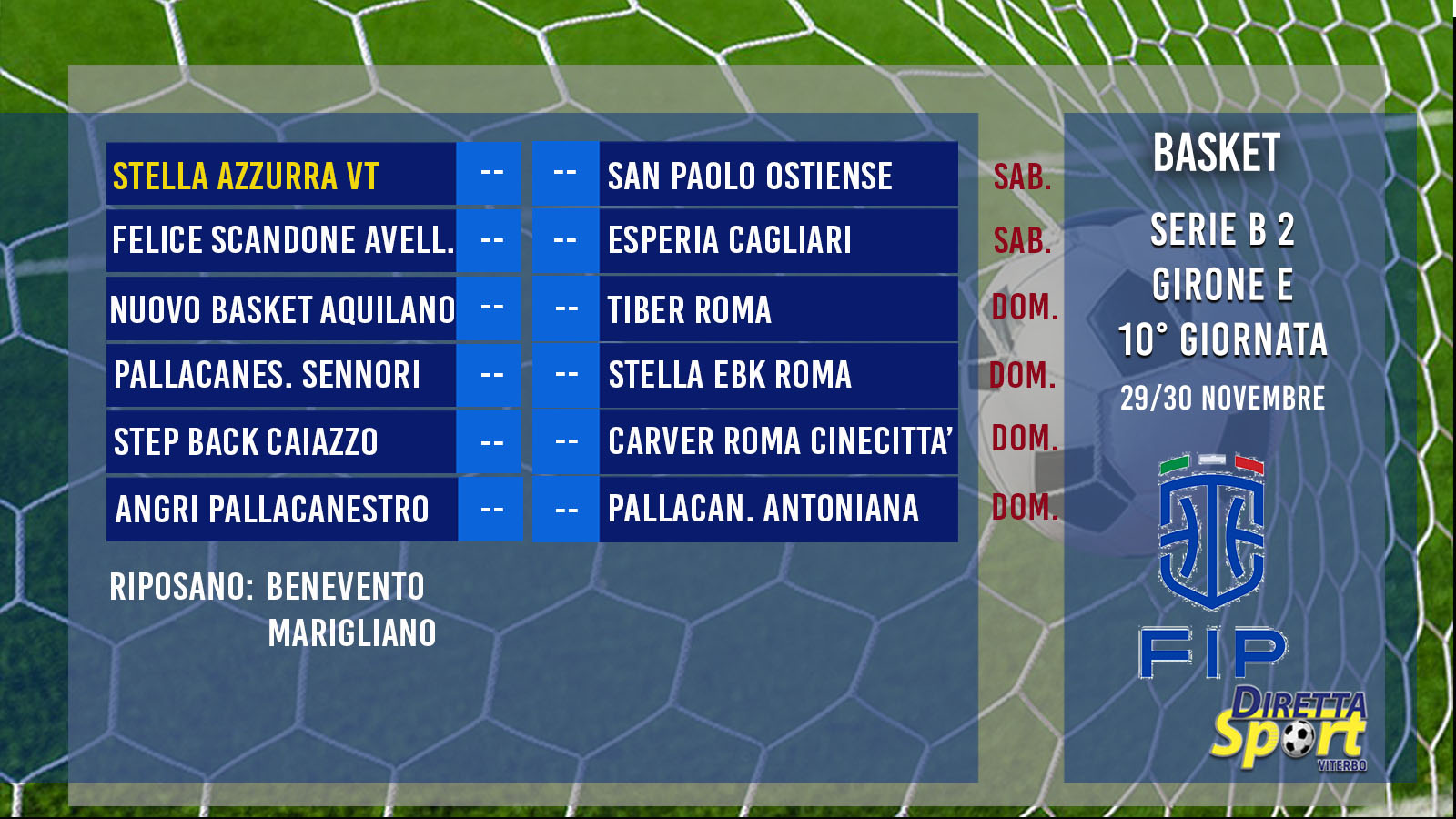 BASKET B2 GIR.E – Programma della 10° Giornata e Classifica.