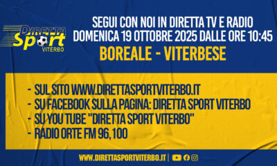 BOREALE-VITERBESE “Vivila in diretta con Diretta Sport” 7° giornata – Domenica 19 Ottobre 2025 dalle ore 10,45. DOVE SEGUIRCI: – In...