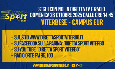 VITERBESE-CAMPUS EUR “Vivila in diretta con Diretta Sport” 8° giornata – Domenica 26 Ottobre 2025 dalle ore 14,45. DOVE SEGUIRCI: –...