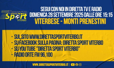 VITERBESE-MONTI PRENESTINI “Vivila in diretta con Diretta Sport” 4° giornata – Domenica 28 Settembre 2025 dalle ore 15,15. DOVE SEGUIRCI: –...