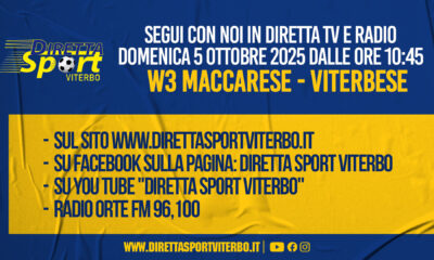 W3 MACCARESE-VITERBESE “Vivila in diretta con Diretta Sport” 5° giornata – Domenica 5 Ottobre 2025 dalle ore 10,45. DOVE SEGUIRCI: –...